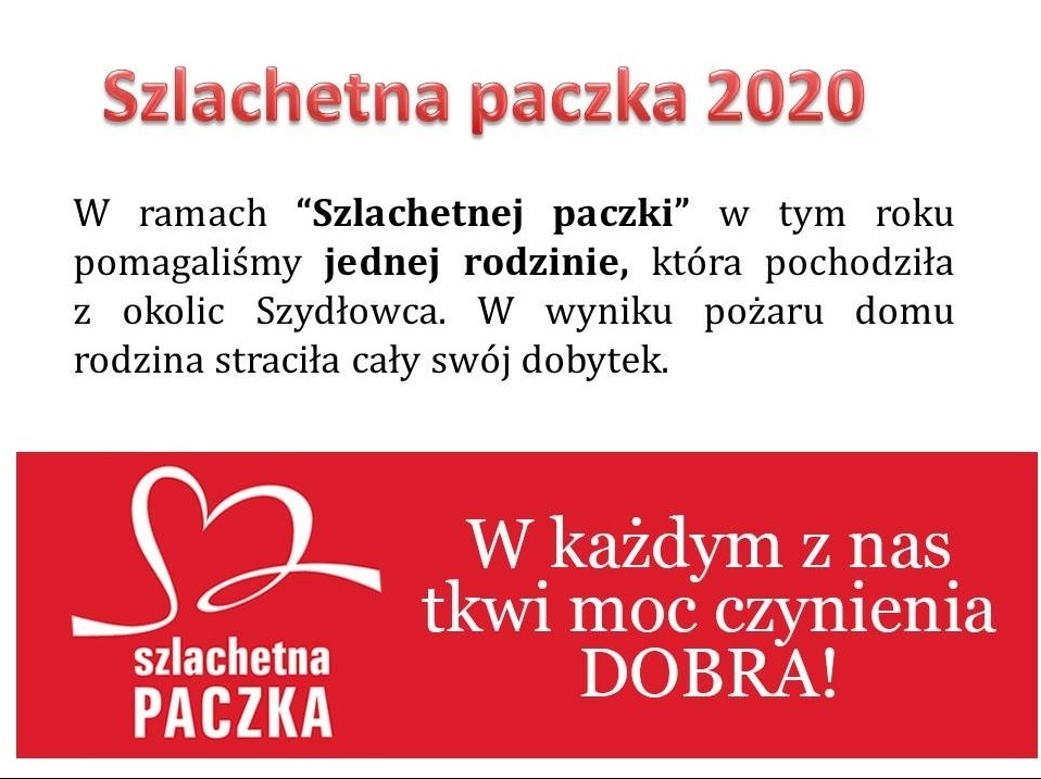 "SZLACHETNA PACZKA"W tym roku pomogliśmy jednej rodzinie.